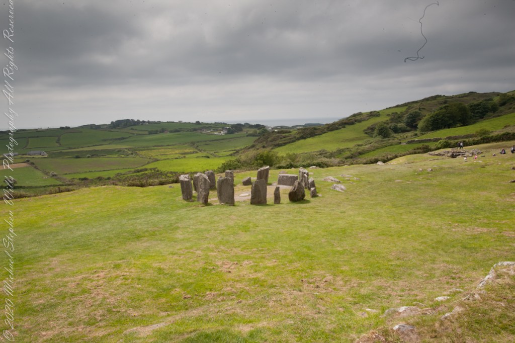 The Celtic Sea is close to this site, unoccupied since 800 BC, may be as old as 1100 BC according to radiocarbon dating from 1957 excavations. Thirteen of the original seventeen stones form a circle 31 feet across. Two portal stones face a recumbent stone, together forming a axis pointing to the sun position at sunrise on the winter solstice. One of the most visited Neolithic sites in Ireland, it required some patience to achieve an image without human figures.