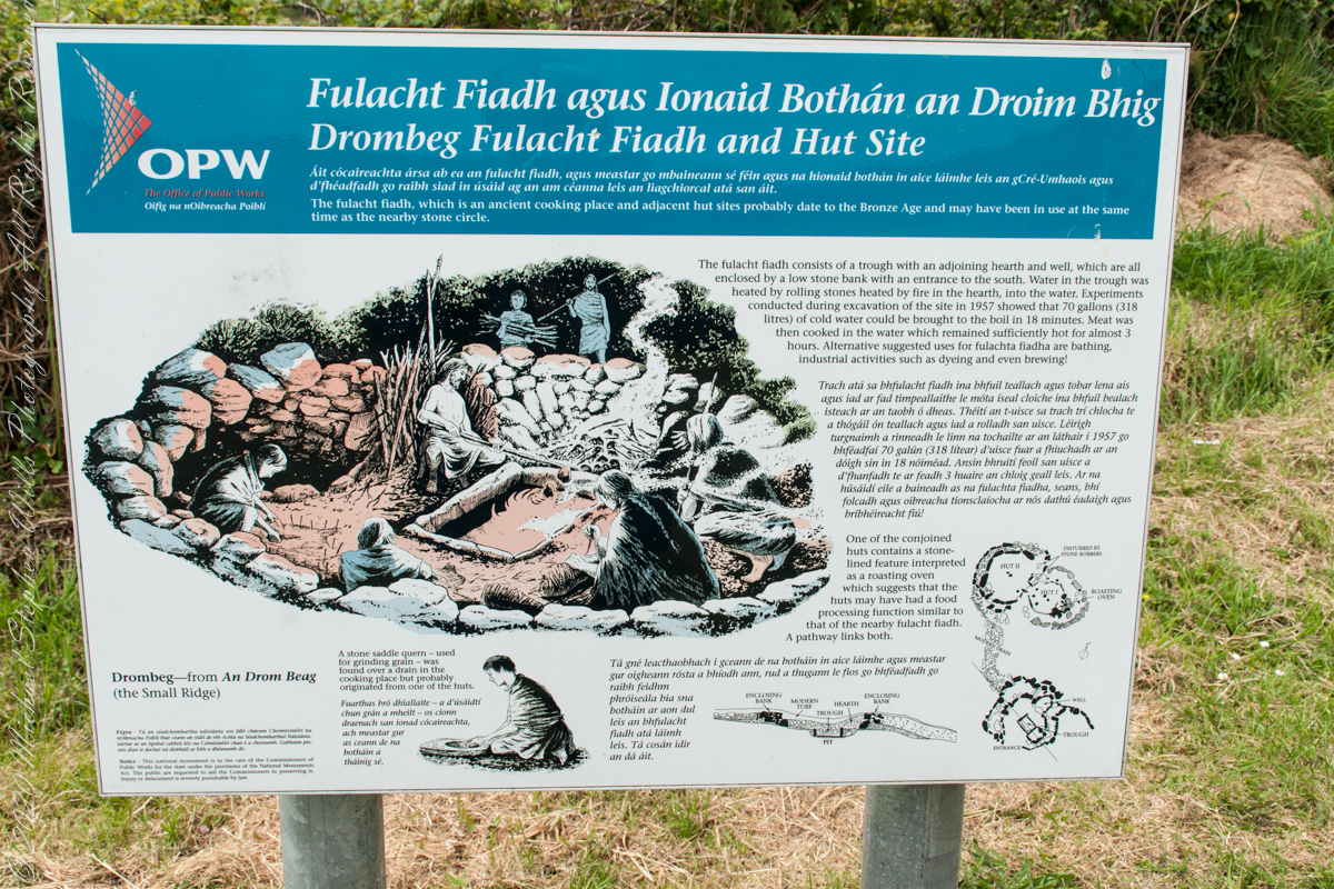 Drombeg’s Fulacht Fiadh, a Bronze Age cooking site, used heated stones to boil water for cooking, dyeing, and brewing.