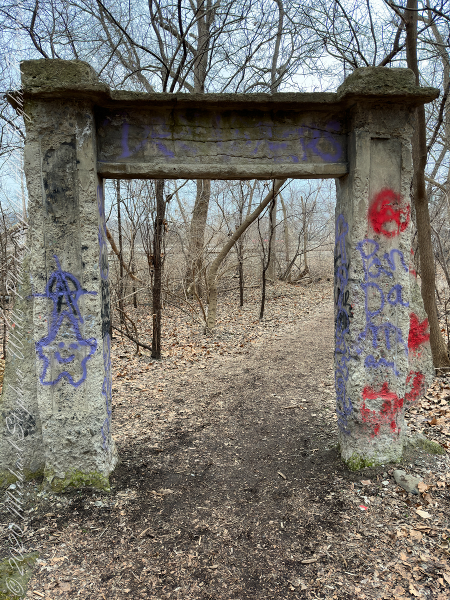 The original entrance to the Fuertes Bird Sanctuary, now called Renwick Wood, was marked by this arch, designed by Louis Agassiz Fuertes, dedicated June 10, 1917.