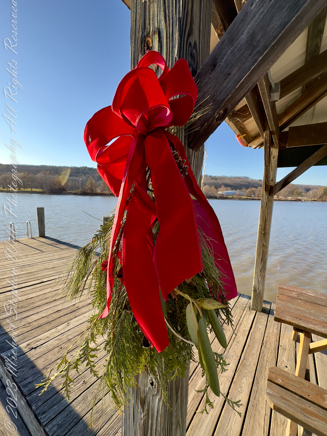 Switching seasons, we see the docks adorned with festive wreaths, injecting life and celebration into the scenery. The bright red ribbons stand out against the crisp blue of the water and the sky, suggesting a community that embraces tradition and the joy of the moment.